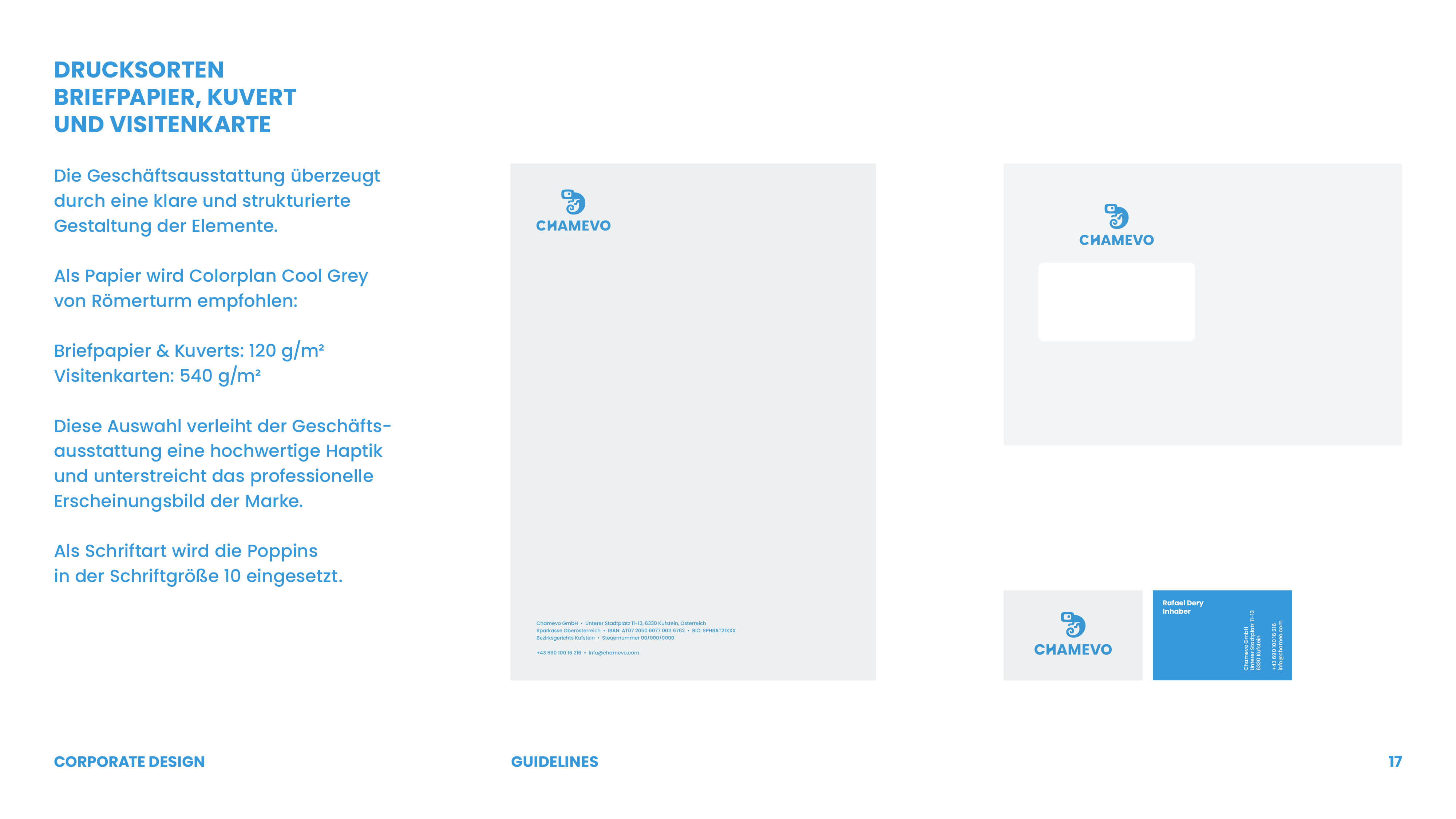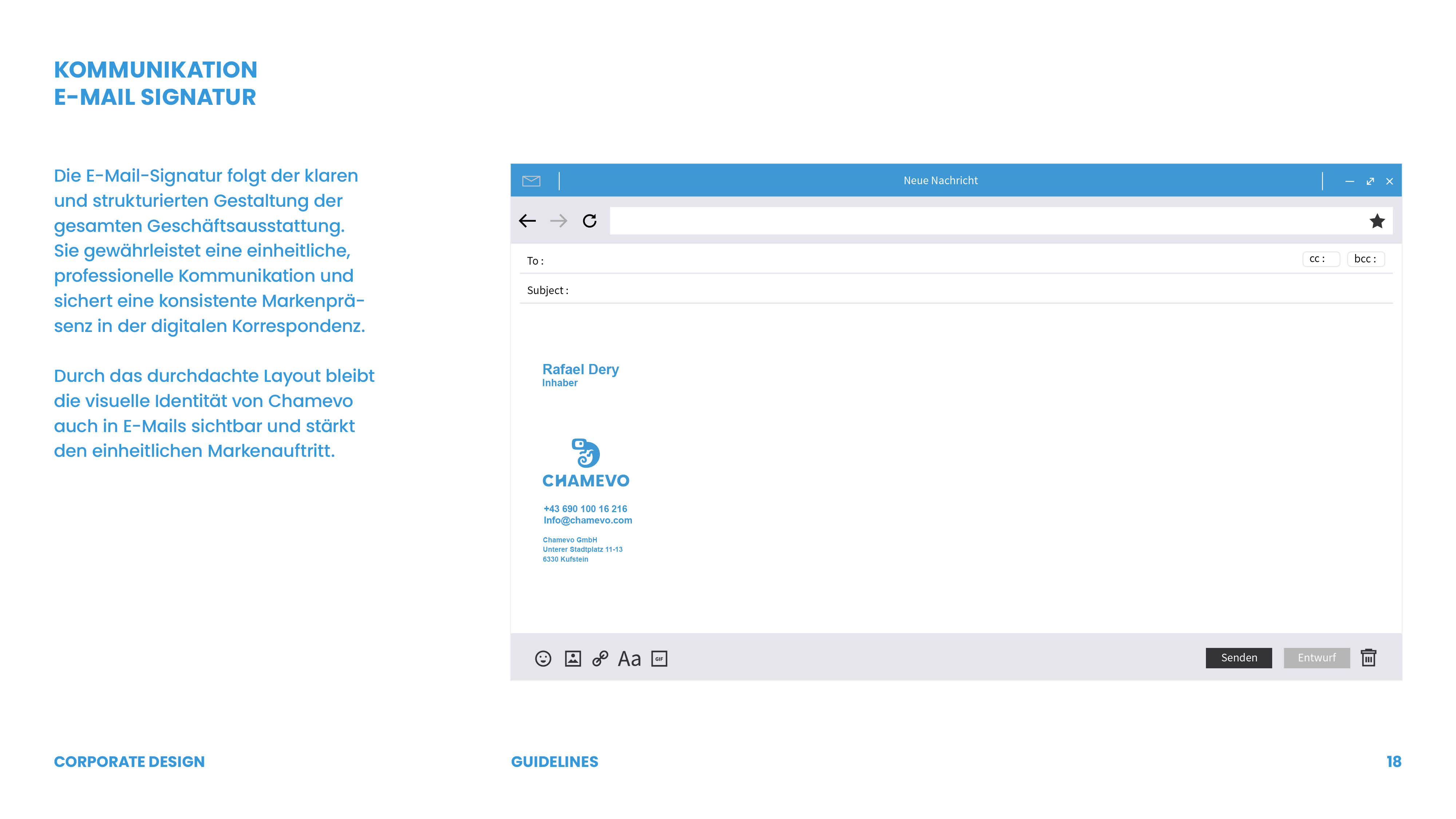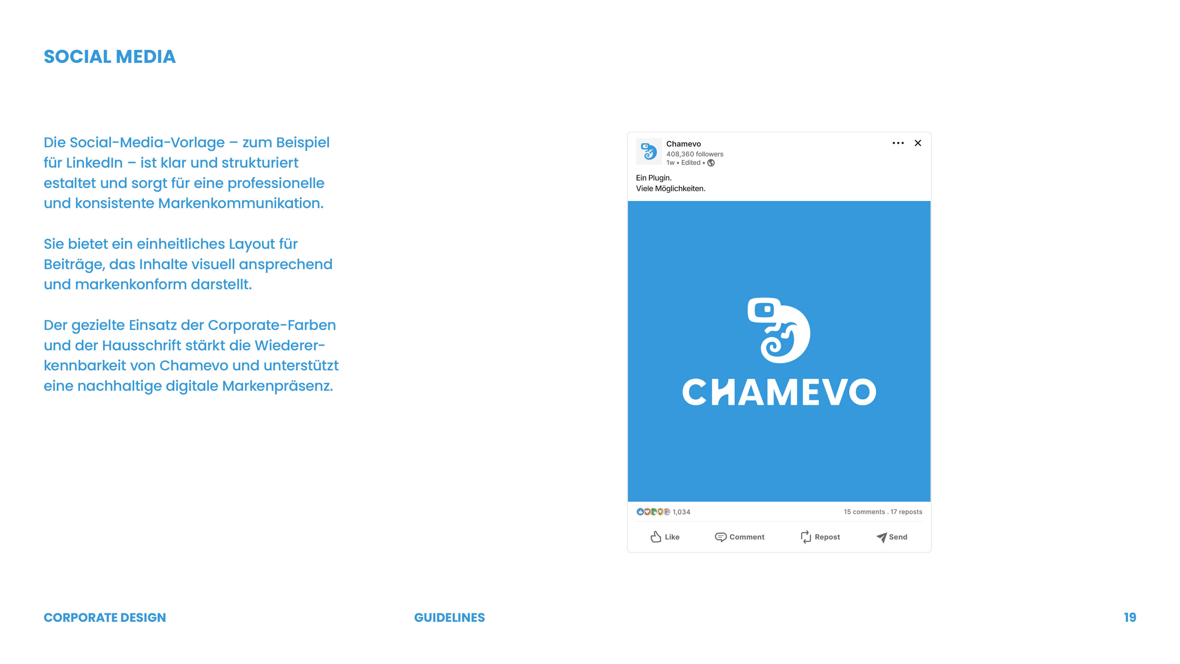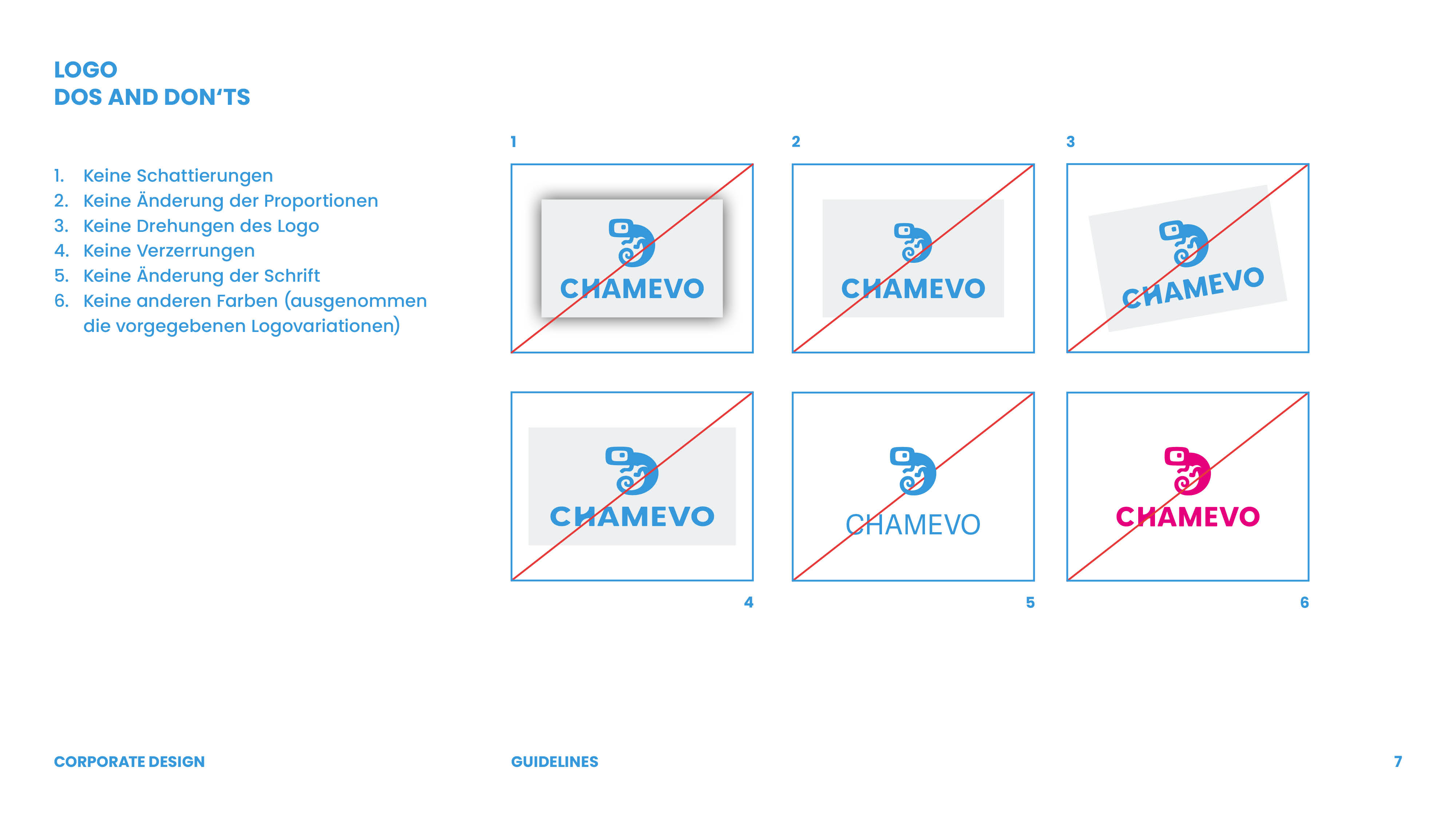 Für Chamevo haben wir ein visuelles Konzept entwickelt, das Innovation, Klarheit und Dynamik vermittelt. Mit dem Plugin können Produkte ganz einfach gebrandet und direkt bestellt werden – eine Lösung, die Flexibilität und Benutzerfreundlichkeit vereint. Das Design übersetzt diese Funktionalität in eine moderne, reduzierte und prägnante Markenidentität, die das Produkt klar im Markt positioniert.